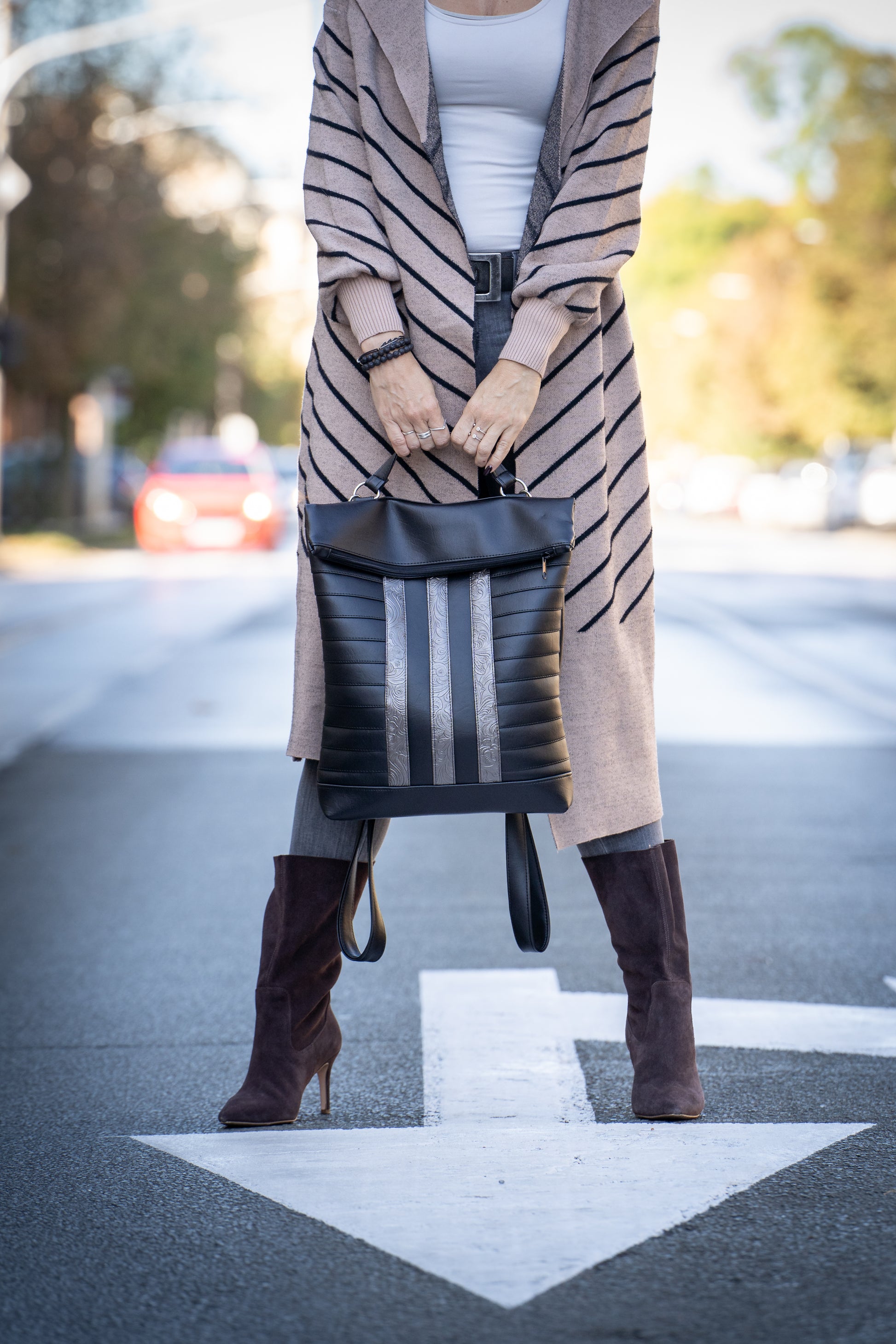 3WAY+ Ruksak je većih dimenzija, širokog dna i poznatog dizajna. Ruksak je izrađen od umjetne visokokvalitetne kože sa kopčanjem na zatvarač i magnete, s dva podesiva remena koja se mogu skinuti čime omogućavaju nošenje ruksaka na tri različita načina. Unutrašnji i vanjski džep.