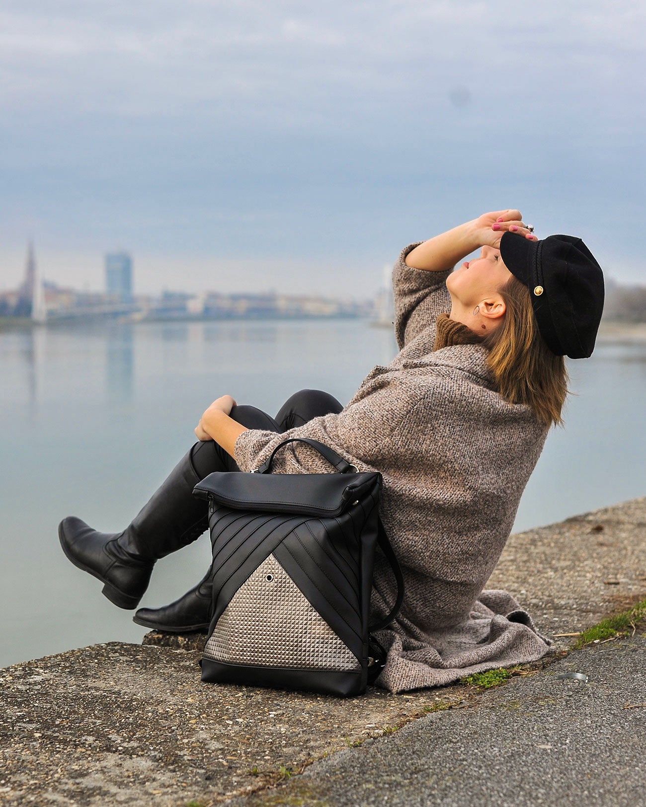 3WAY+ Ruksak je većih dimenzija, širokog dna i poznatog dizajna. Ruksak je izrađen od umjetne visokokvalitetne kože sa kopčanjem na zatvarač i magnete, s dva podesiva remena koja se mogu skinuti čime omogućavaju nošenje ruksaka na tri različita načina. Unutrašnji i vanjski džep.
