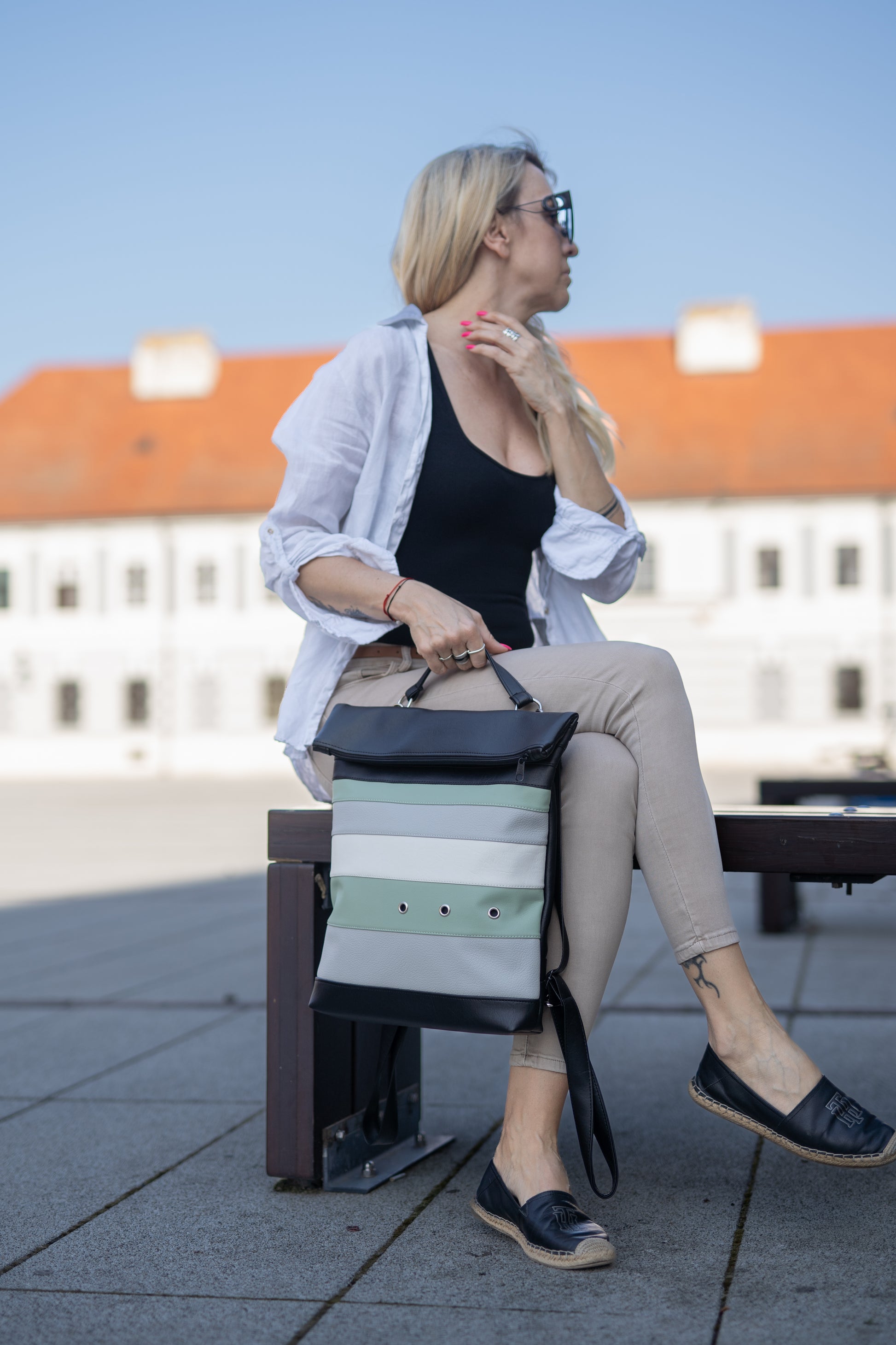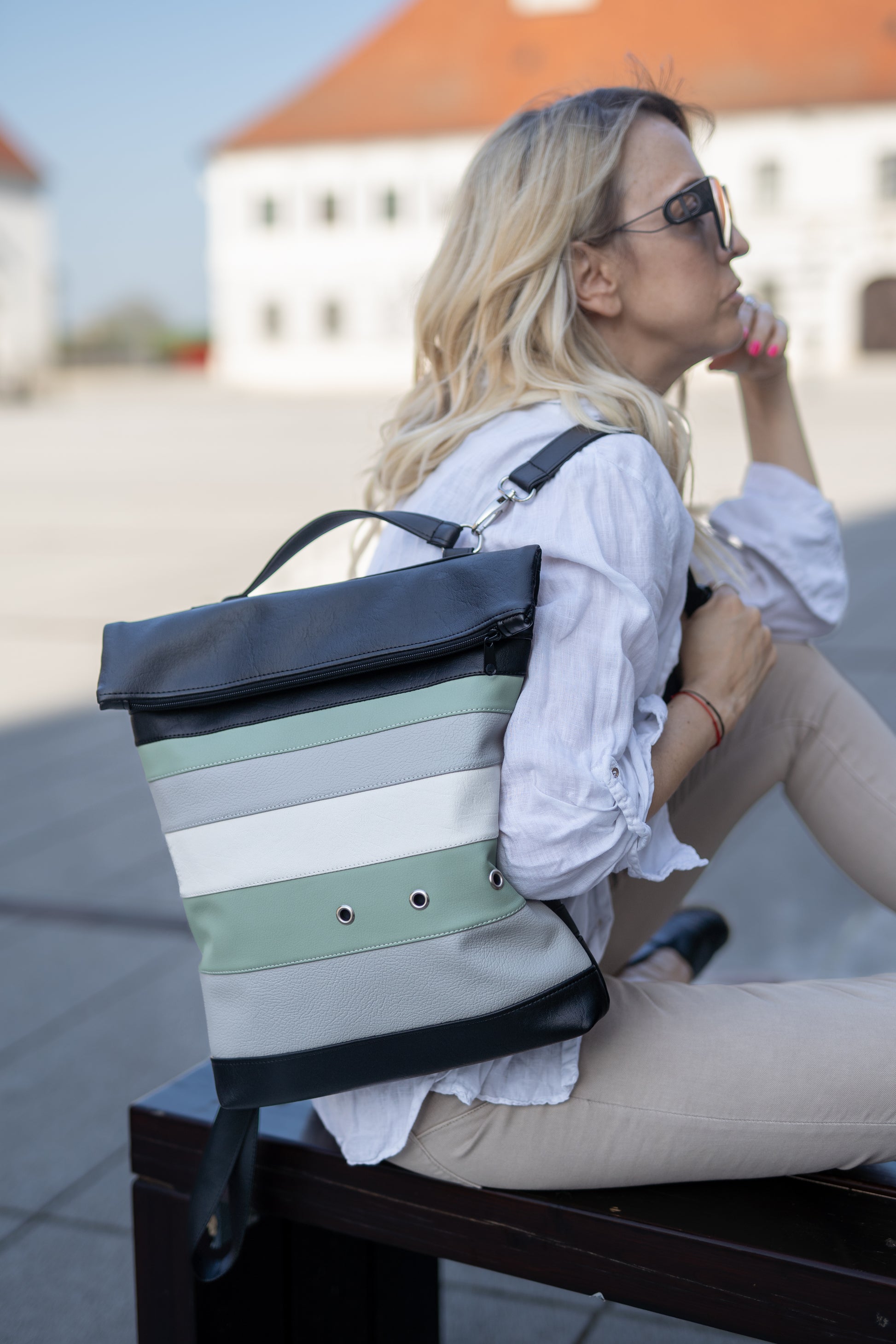 3WAY+ Ruksak je većih dimenzija, širokog dna i poznatog dizajna. Ruksak je izrađen od umjetne visokokvalitetne kože sa kopčanjem na zatvarač i magnete, s dva podesiva remena koja se mogu skinuti čime omogućavaju nošenje ruksaka na tri različita načina. Unutrašnji i vanjski džep.