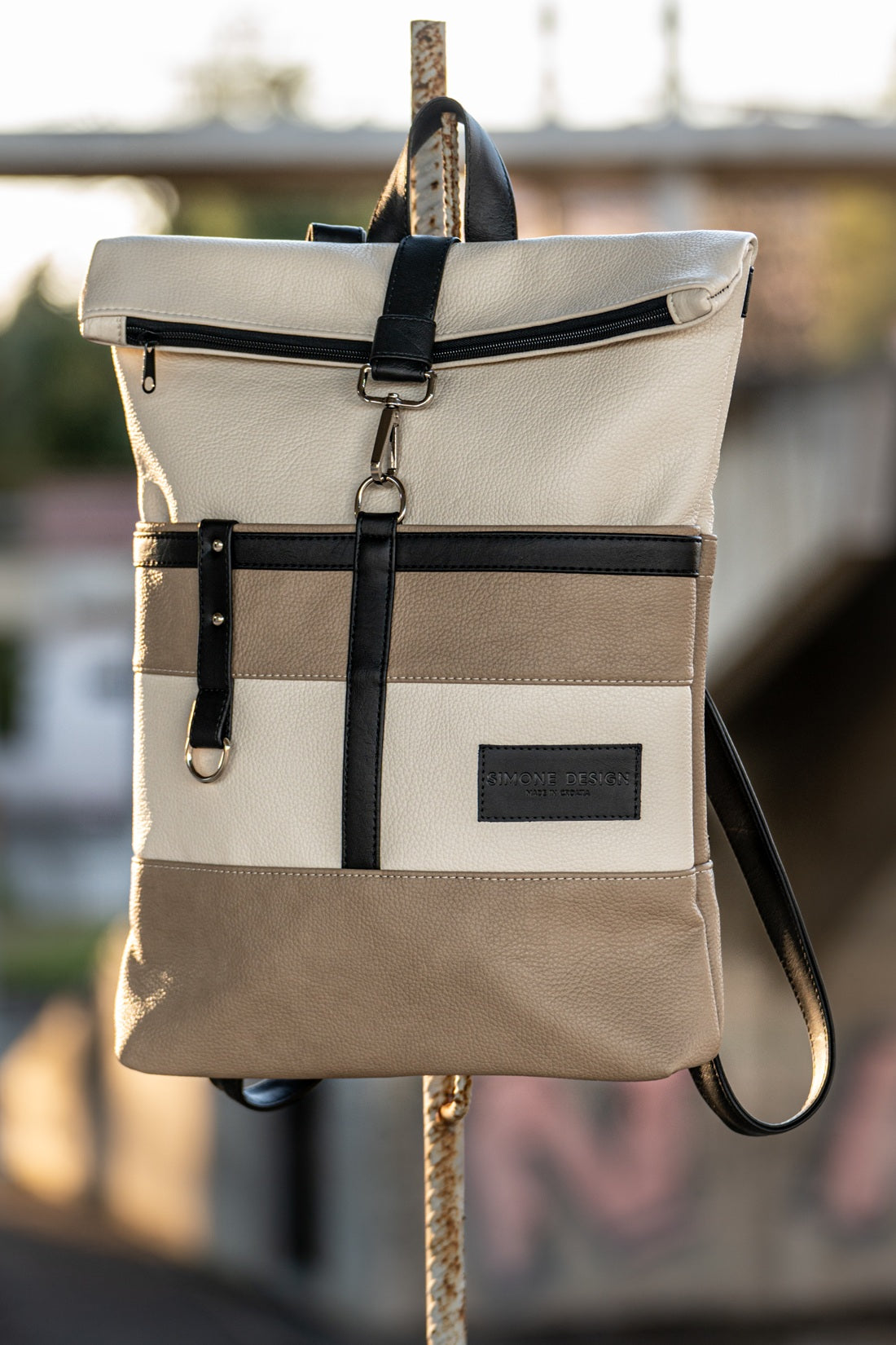 Ruksak je izrađen ručno od visokokvalitetne umjetne kože kopčanjem na zatvarač i pojasom s karabinerom. Velika i prostrana dva prednja i stražnja džepa te unutrašnji našivenim džep. Regulatori na oba remena.