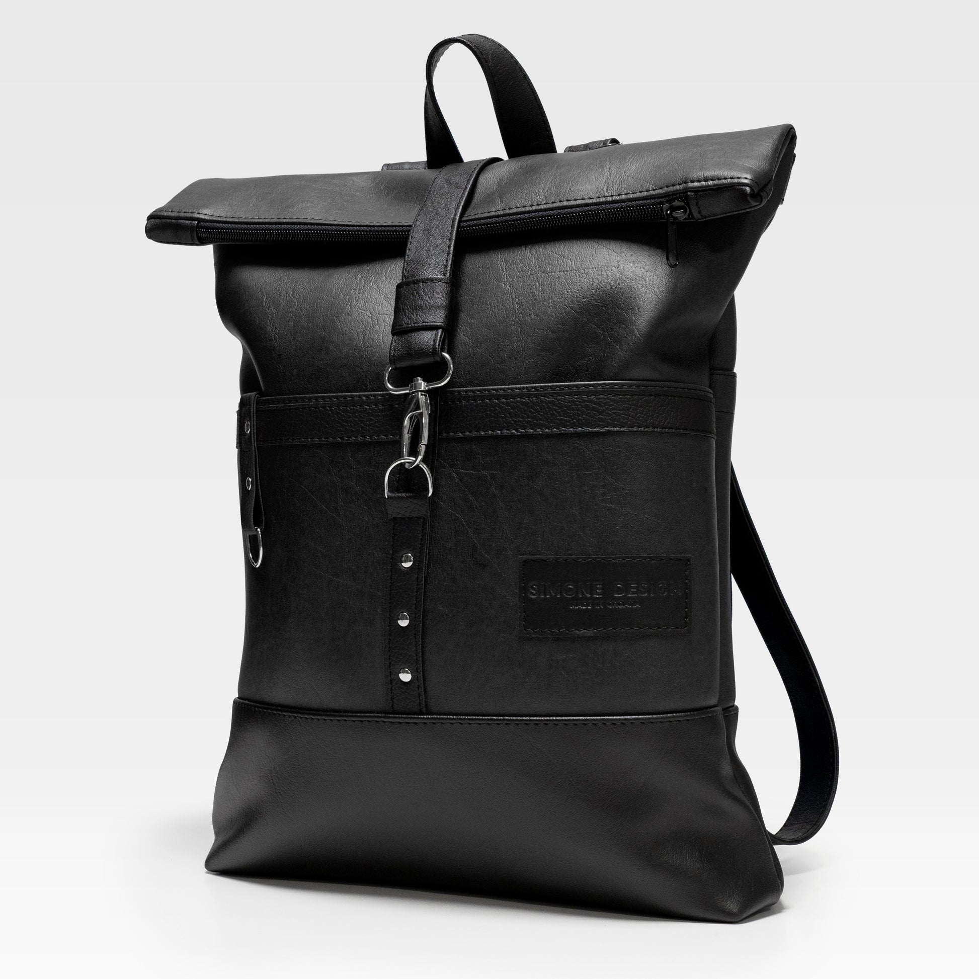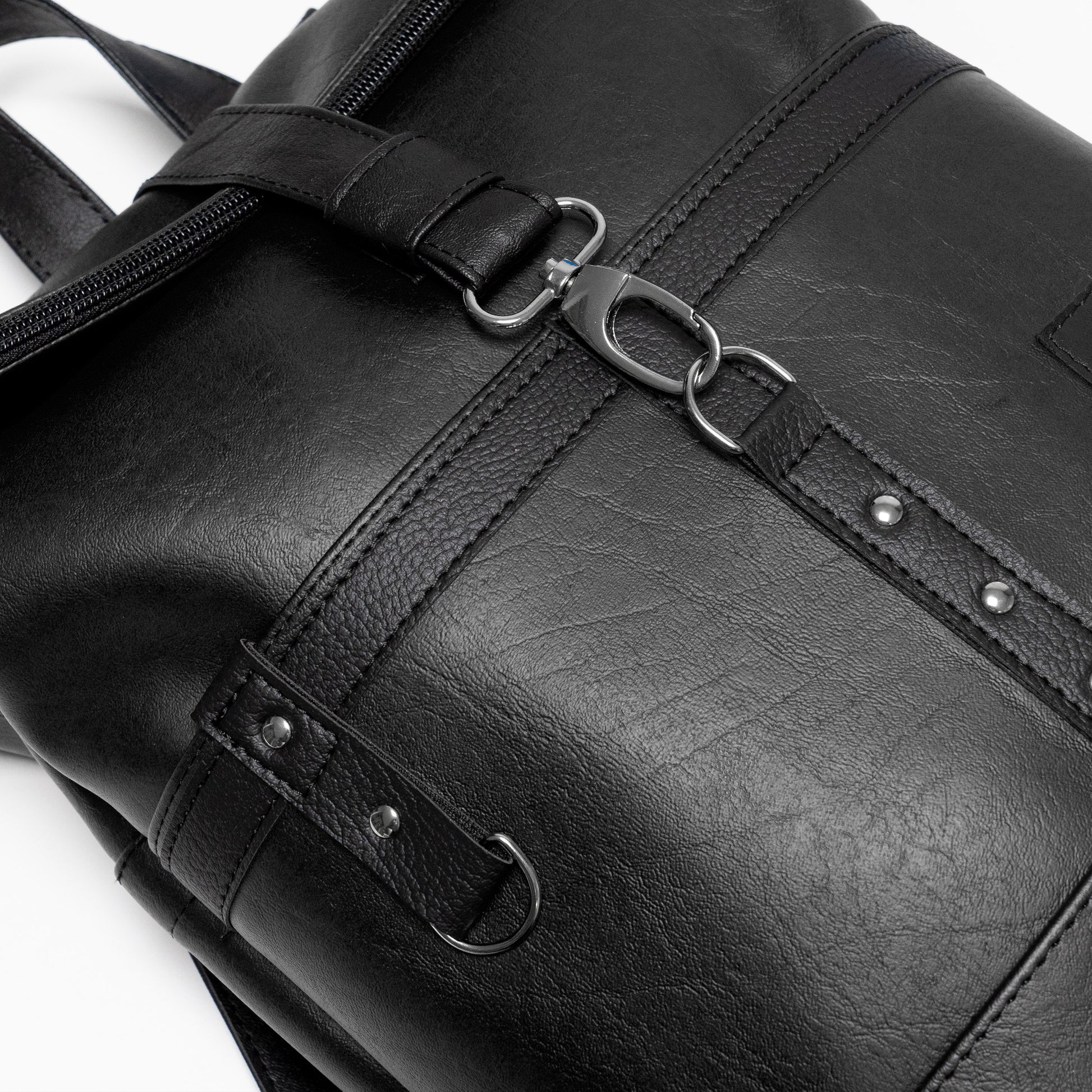 Ruksak je izrađen ručno od visokokvalitetne umjetne kože kopčanjem na zatvarač i pojasom s karabinerom. Velika i prostrana dva prednja i stražnja džepa te unutrašnji našivenim džep. Regulatori na oba remena.