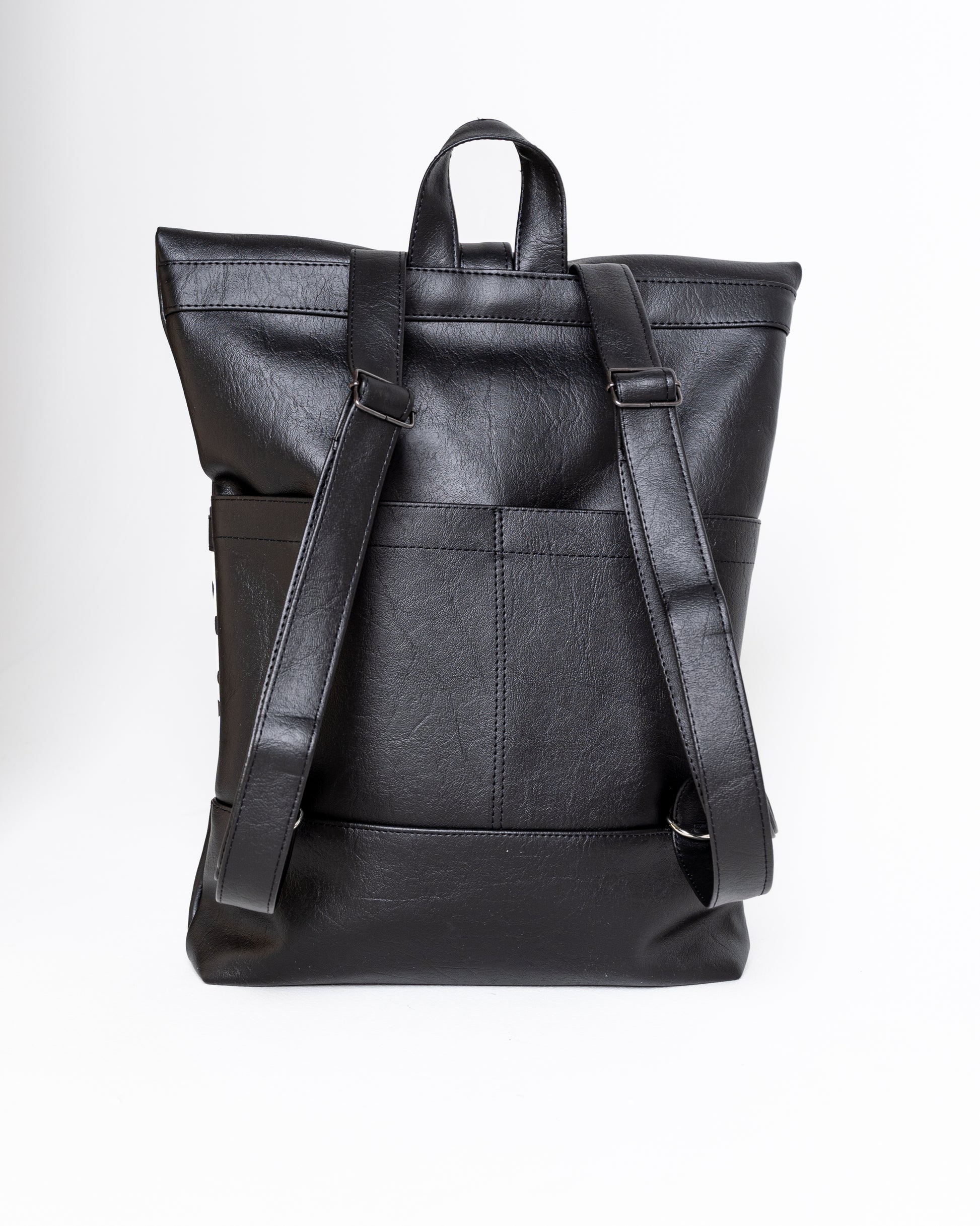 Ruksak je izrađen ručno od visokokvalitetne umjetne kože kopčanjem na zatvarač i pojasom s karabinerom. Velika i prostrana dva prednja i stražnja džepa te unutrašnji našivenim džep. Regulatori na oba remena.