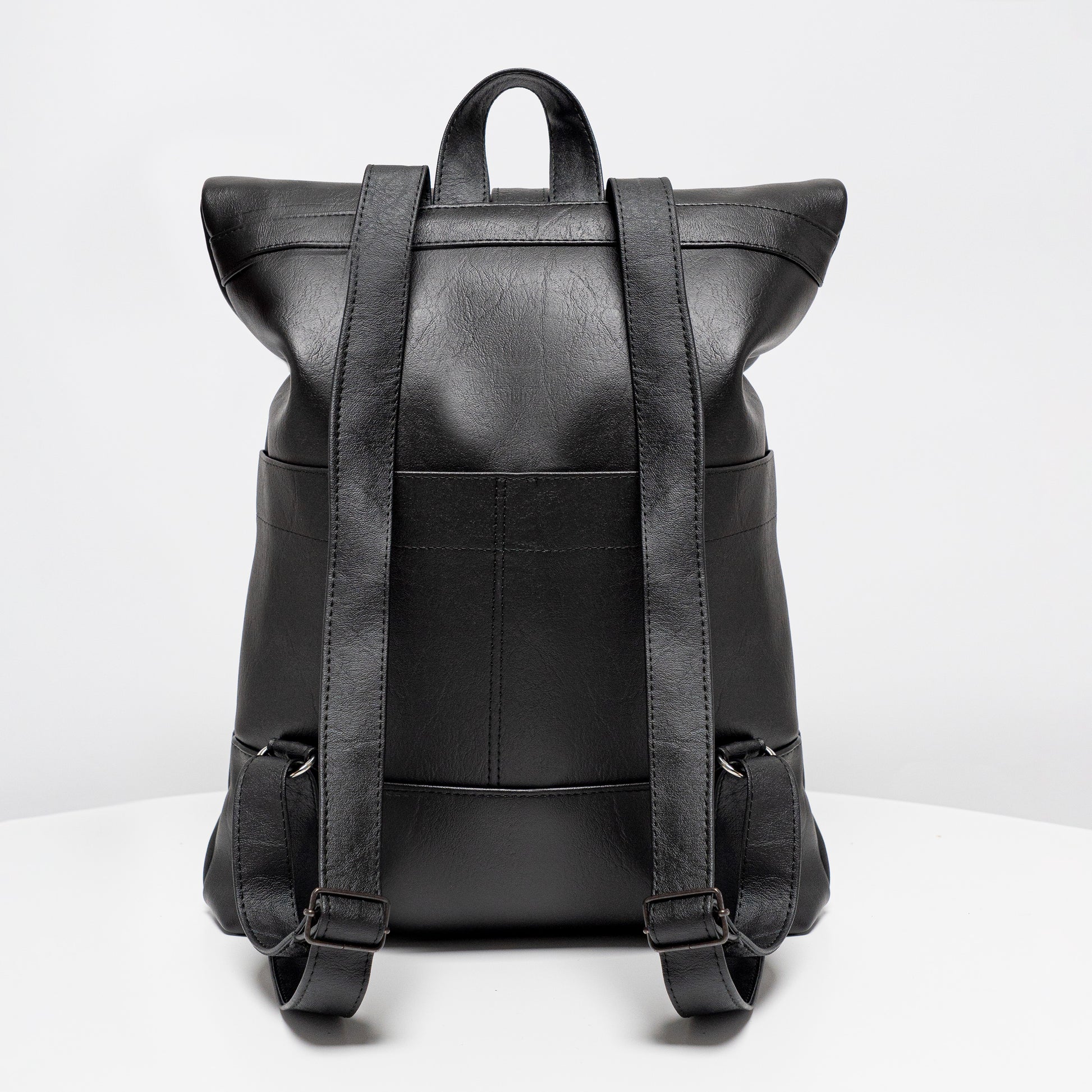 Ruksak je izrađen ručno od visokokvalitetne umjetne kože kopčanjem na zatvarač i pojasom s karabinerom. Velika i prostrana dva prednja i stražnja džepa te unutrašnji našivenim džep. Regulatori na oba remena.