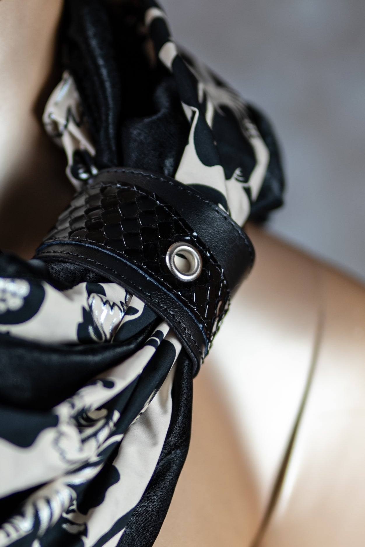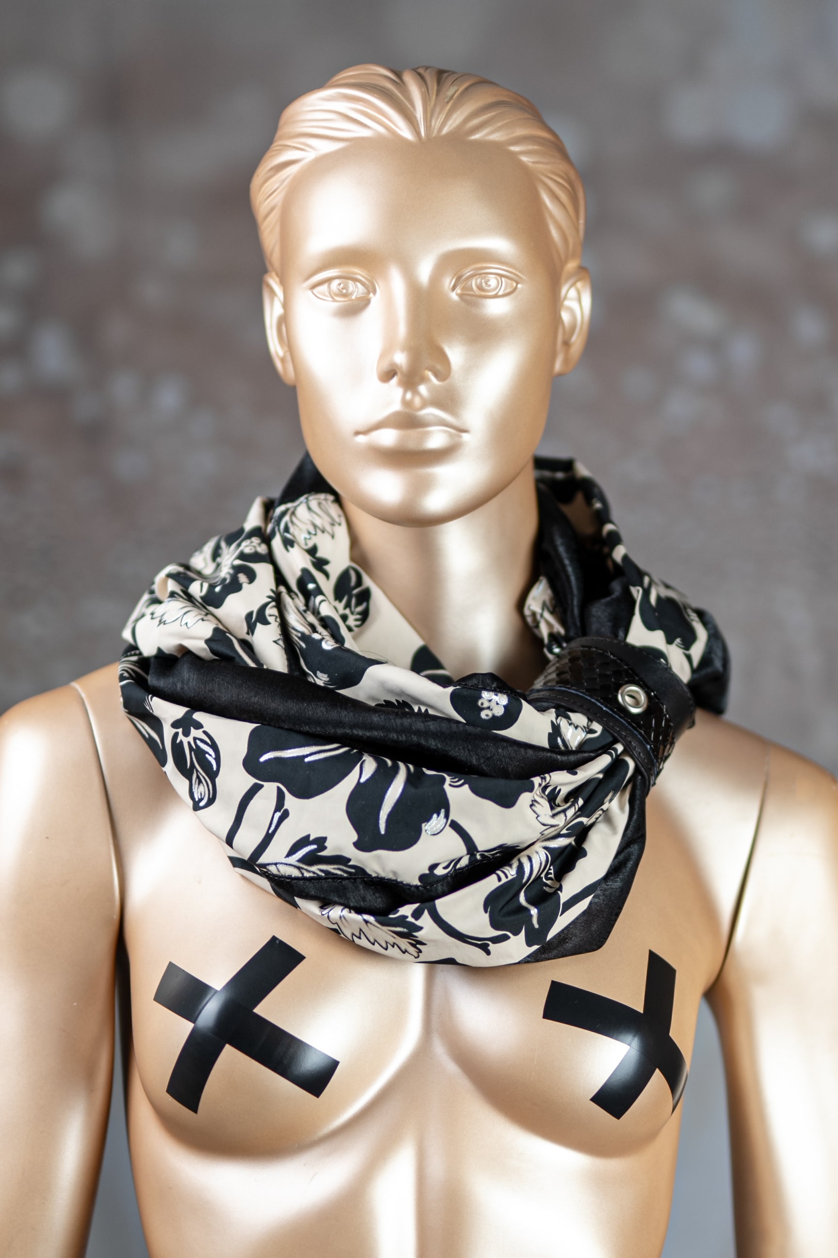 Ručno izrađena marama napravljena od više slojeva pamučnog materijala i spojena na krajevima. Stavlja se dva puta oko vrata uz dodatni modni dodatak kožne narukvice kao kopče.