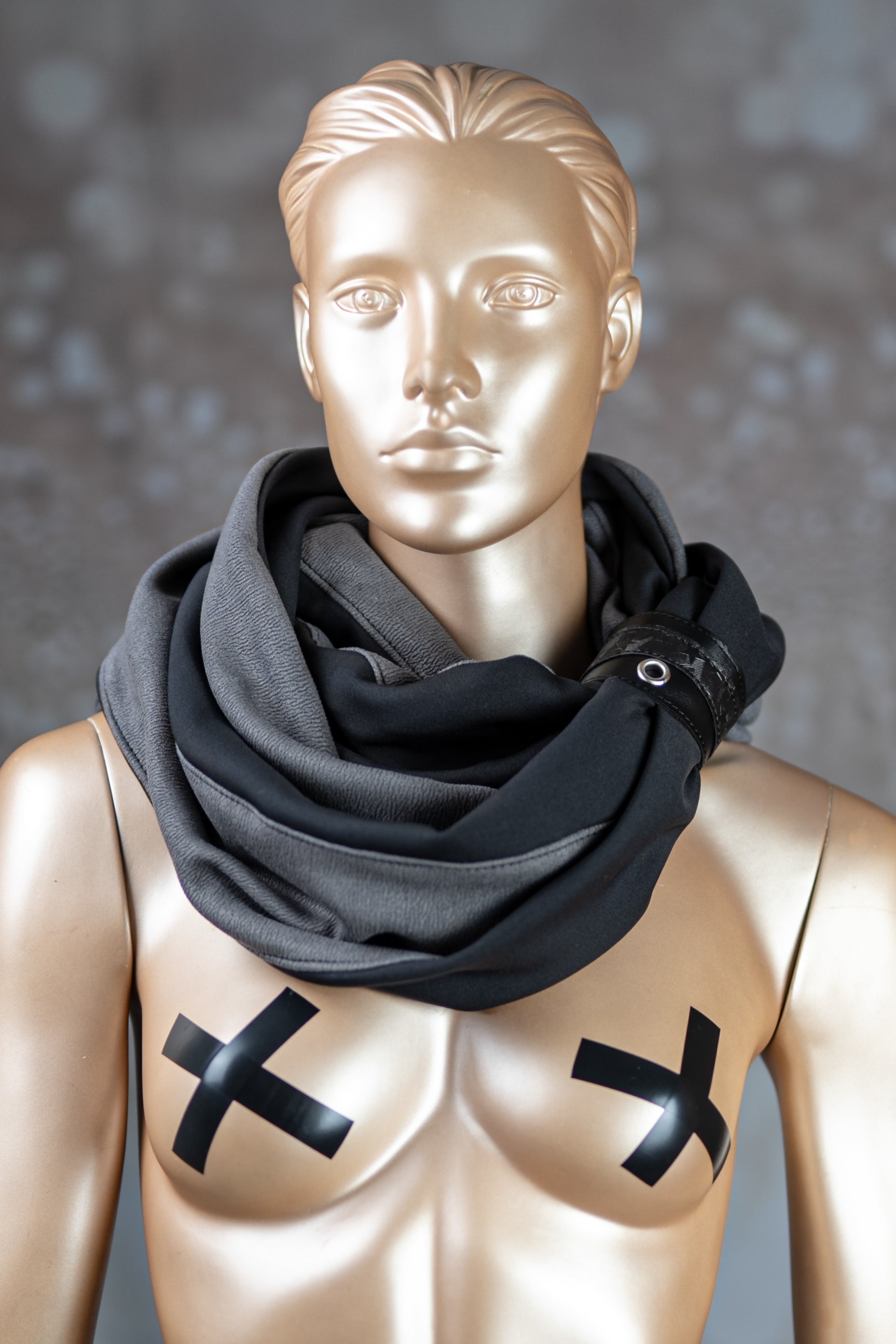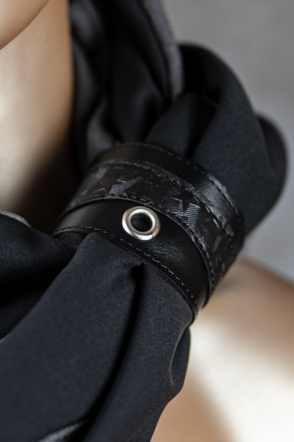 Ručno izrađena marama napravljena od više slojeva pamučnog materijala i spojena na krajevima. Stavlja se dva puta oko vrata uz dodatni modni dodatak kožne narukvice kao kopče.