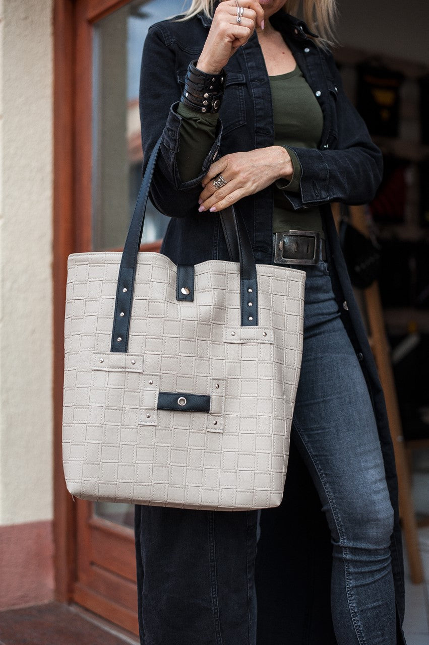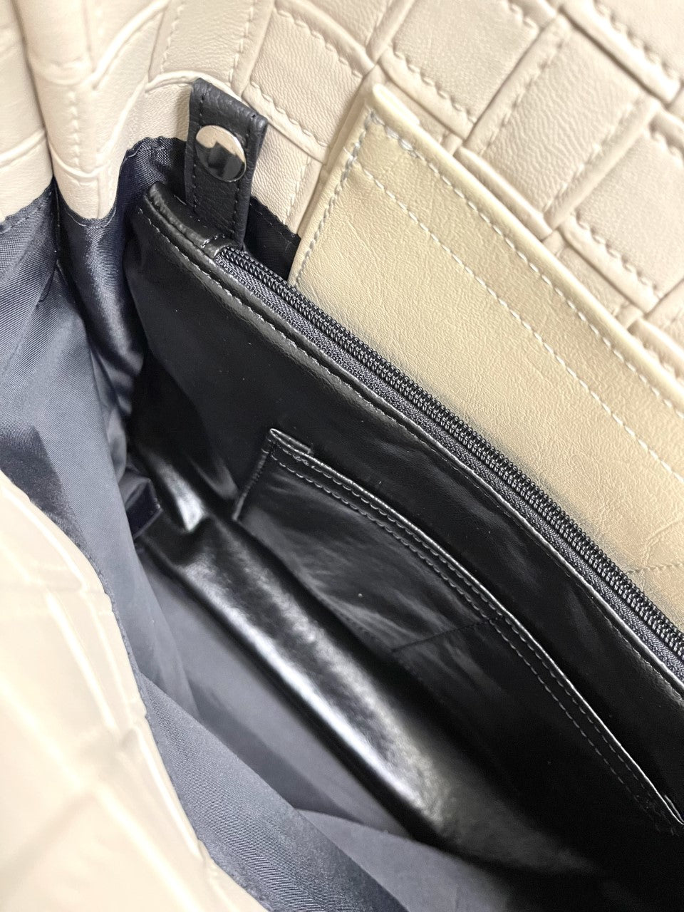Nova verzija naše praktične i multifunkcionalne torbe. Torba je izrađena od visokokvalitetne umjetne kože. Na stražnjoj strani torbe nalazi se veliki džep sa zatvaračem, a u unutrašnjosti jedan našiveni koji je podijeljen na dva dijela i zasebna mala torbica dimenzija 34x28 cm na zatvarač koja ima našiveni džep i kopča se u unutrašnjosti Posvuduše na dva boćna drukera te se može skinuti. Kopčanje je na druker.