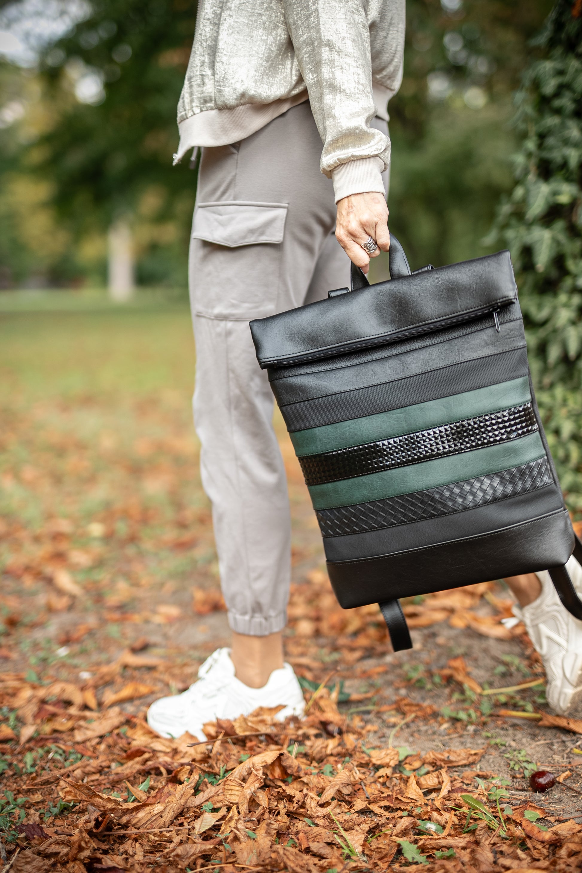 RUKsak je većih dimenzija, širokog dna i poznatog dizajna. Ruksak je izrađen od umjetne visokokvalitetne kože sa kopčanjem na zatvarač i magnete, s dva podesiva remena. Na stražnjoj strani ruksaka nalazi se skriveni veliki džep na zatvarač koji omogućuje dodatni prostor za stvari zaštićen od pogleda. Unutrašnji našiveni džep.