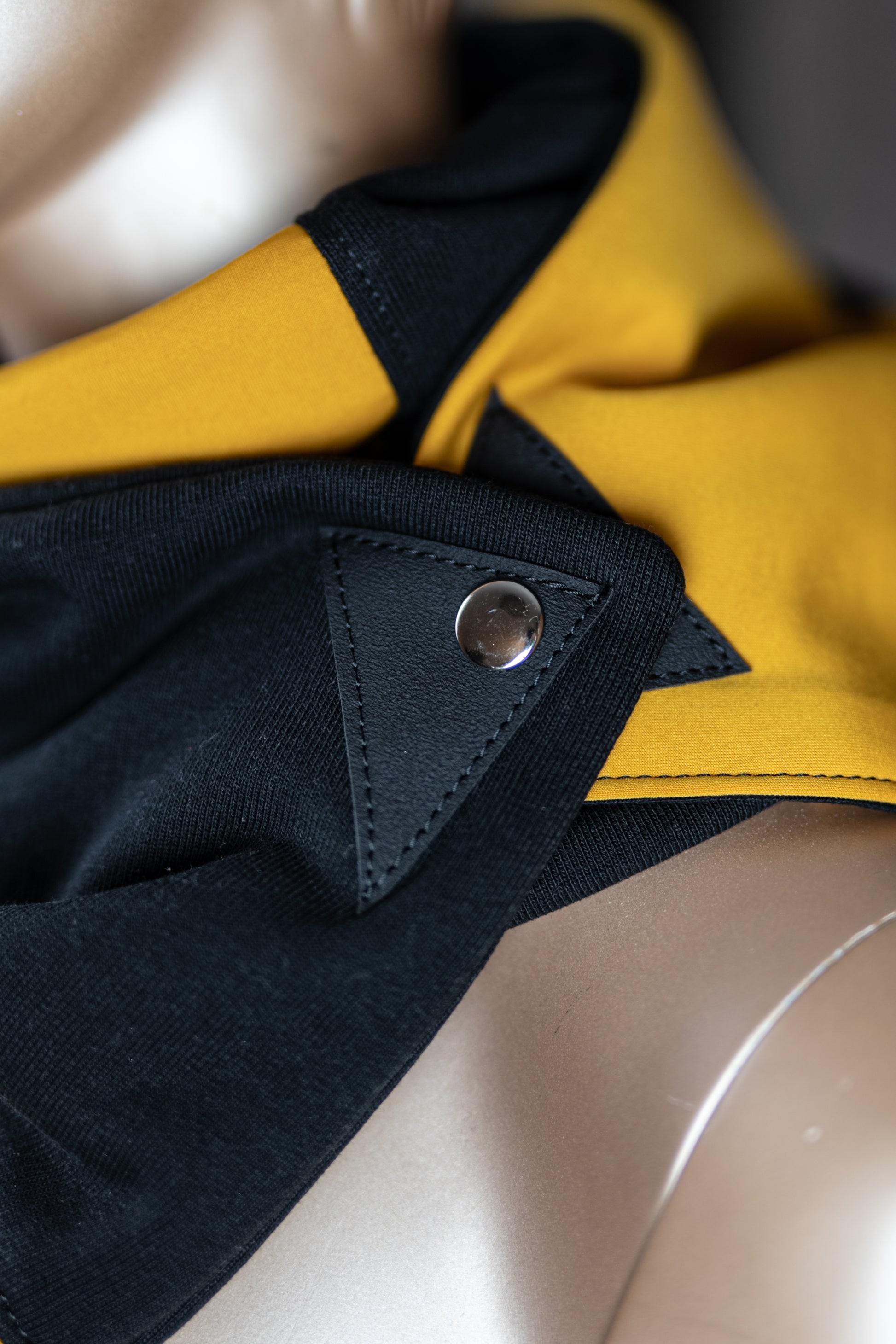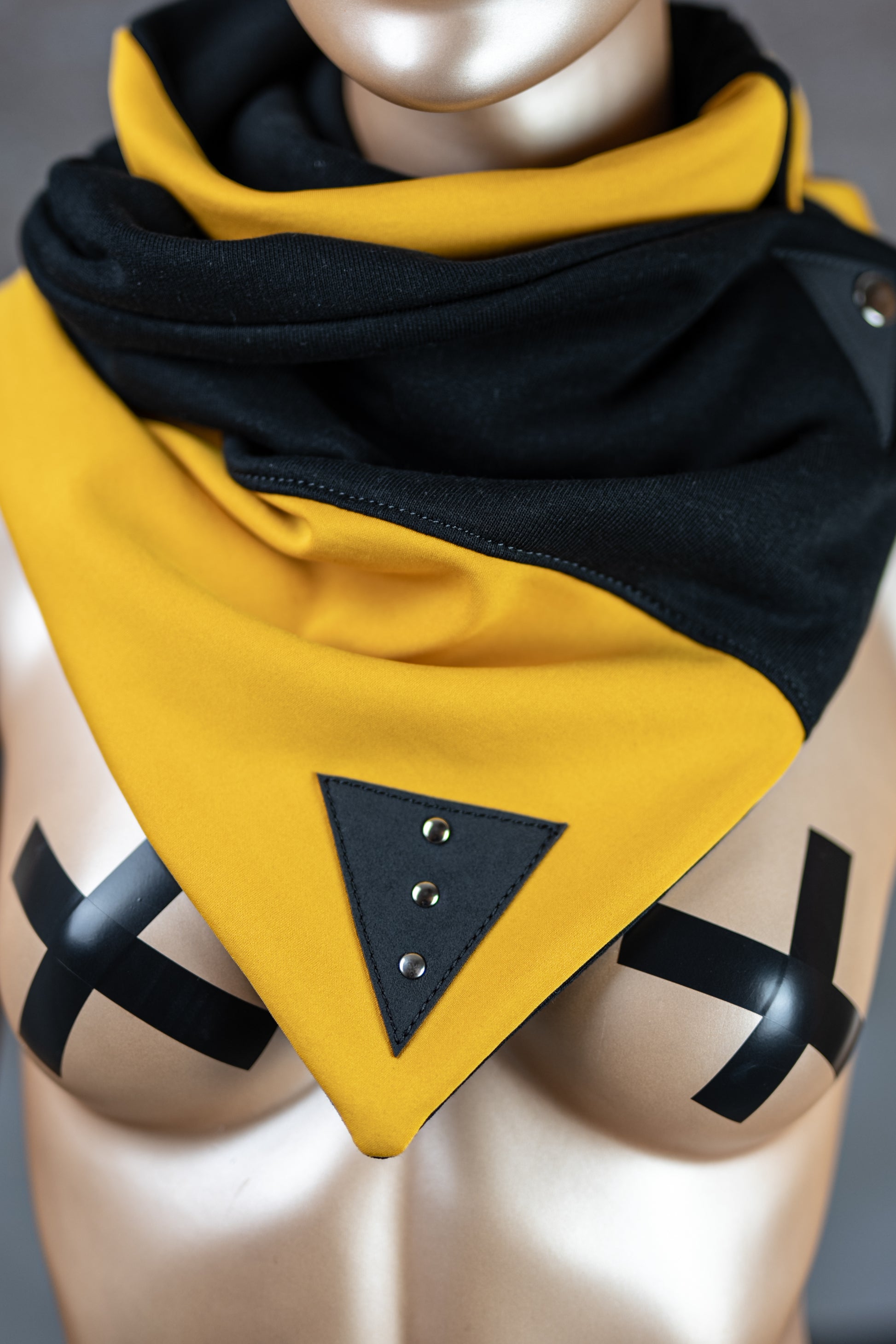 Ručno izrađeni topli zimski šal napravljen od kombinacije više vrsta materijala. Unutrašnji dio šala napravljen je od pamuka, izuzetno nježnog i toplog materijala. Kopčanje je na drukere.