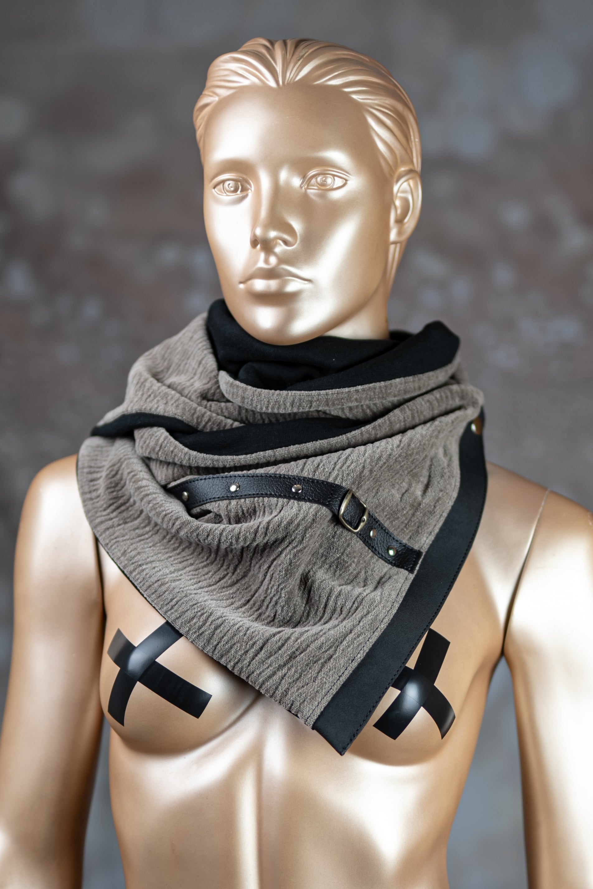 Ručno izrađeni topli zimski šal napravljen od kombinacije više vrsta materijala. Unutrašnji dio šala napravljen je od pamuka, izuzetno nježnog i toplog materijala. Kopčanje je na drukere.
